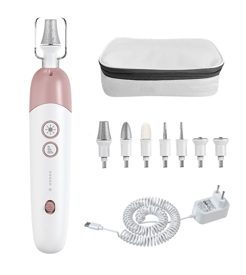 The Manicure and Pedicure Set allows you to achieve professional nail care styling at home. With the 7 high-quality sapphire and felt attachments, you can master every challenge in nail care. The ergonomic design of the electric nail file prevents it from slipping off during treatment, even while operating with up to 5,400 rotations per minute. Both the device + the attachments can be easily stored into the included premium storage pouch which also makes the supply an ideal travelling equipment.