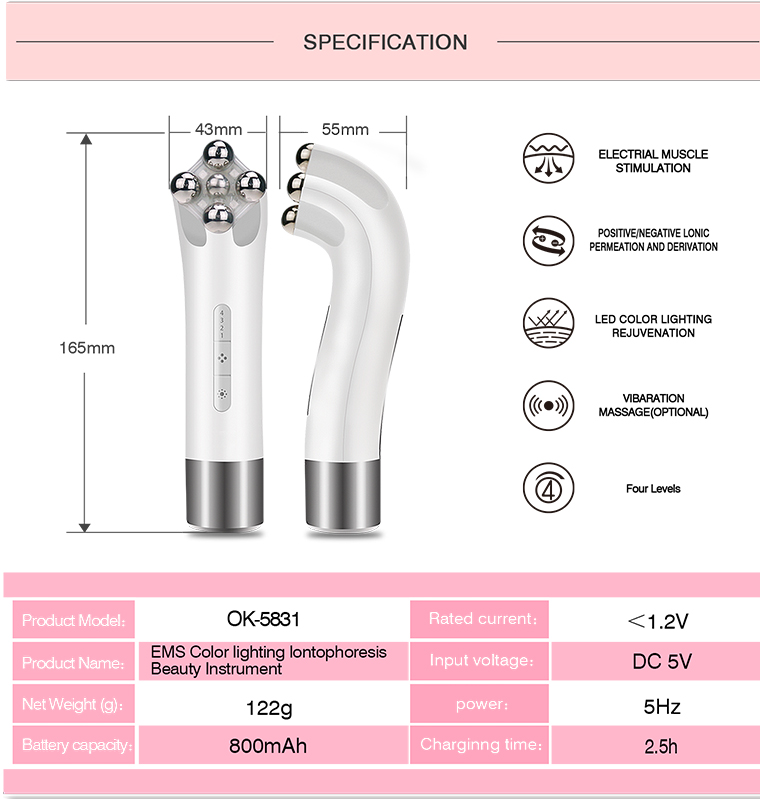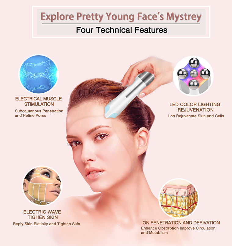 HÖGFREKVENS ANSIKTSMASSAGE -- På rengörings-, penetrerings-, lyft- och ögonvårdslägen, med en högfrekvent vibrerande känsla för att stimulera cellviabiliteten och främja blodcirkulationen. Så det är faktiskt också en ansiktsmassager.